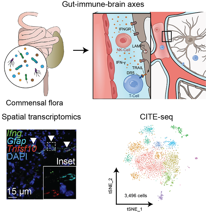 Genomics, spatial transcriptomics, imaging, deep learning, actuator technologies, and behavioral paradigms are combined to study immune control of neural function.